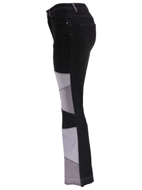 Women's two-color splicing street washed flared jeans ● Material: soft and comfortable, easy to care ● Features: fashion, splicing, color contrast ● Occasion: Leisure, Outing, School, Work, Dating, Party, Travel, Vacation, Office, etc. ● Washing method: wash and dry / separate dark / light colors. ● The size is measured by hand, and it is normal for there to be an error of 1-3cm